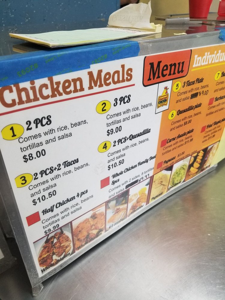 Our Whole Chicken - 8 Pieces, Includes 2 Medium Sides of your Choice, 8 Tortillas, and Salsa on the side. This Classic Deal Is Perfect for a Party of 3. Our Restaurants Specialty is our Seasoned Grilled Chicken that is Charbroiled & Barbecued. This Cooking Technique Embraces the Chickens True Flavor. We Hope you Enjoy!