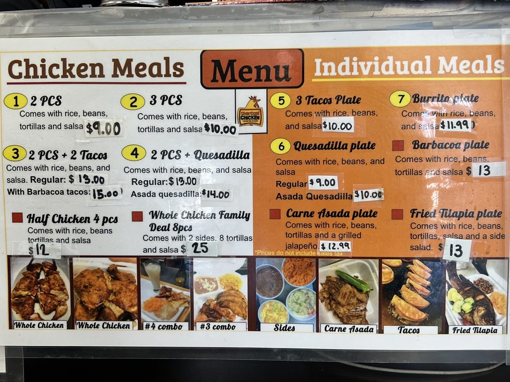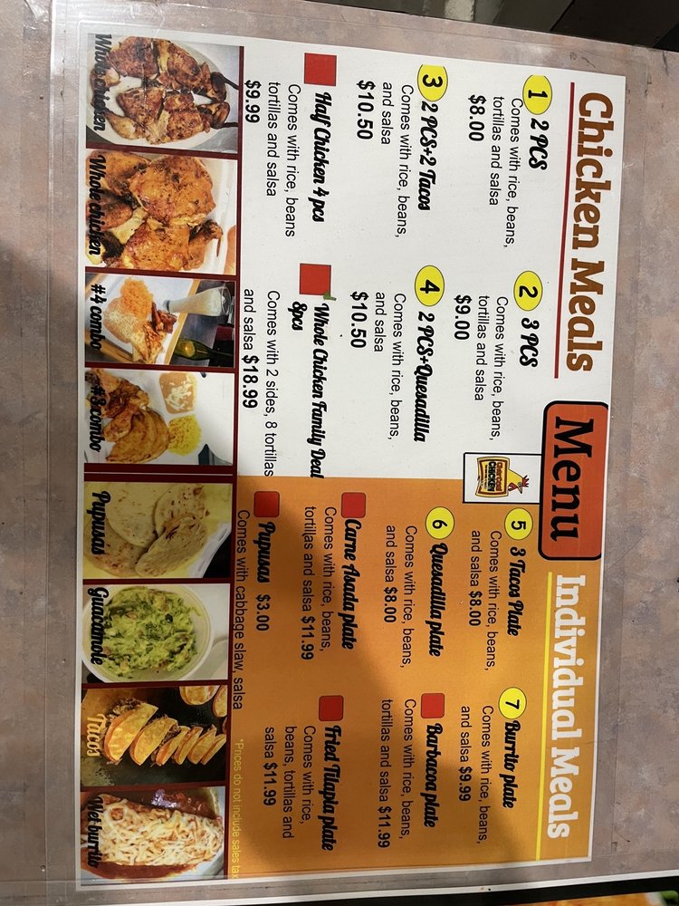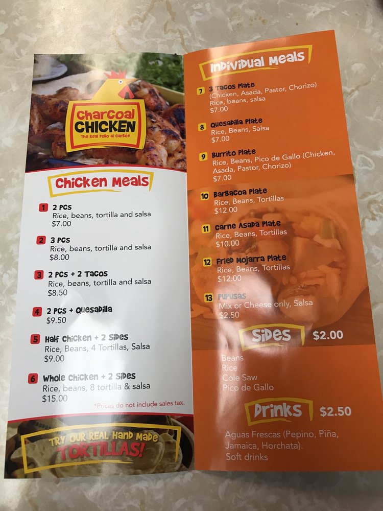 3 Pieces of our Home-style Grilled Chicken Served with 2 Sides of your Choice, 4 Tortillas, and Salsa.Our Restaurants Specialty is our Seasoned Grilled Chicken that is Charbroiled & Barbecued. This Cooking Technique Embraces the Chickens True Flavor. We Hope you Enjoy!